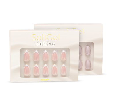 Soft Gel Press-Ons sind fertig designte Tips, die für bis zu 10 Tage Tragzeit mit einem Base Klebesticker befestigt werden.